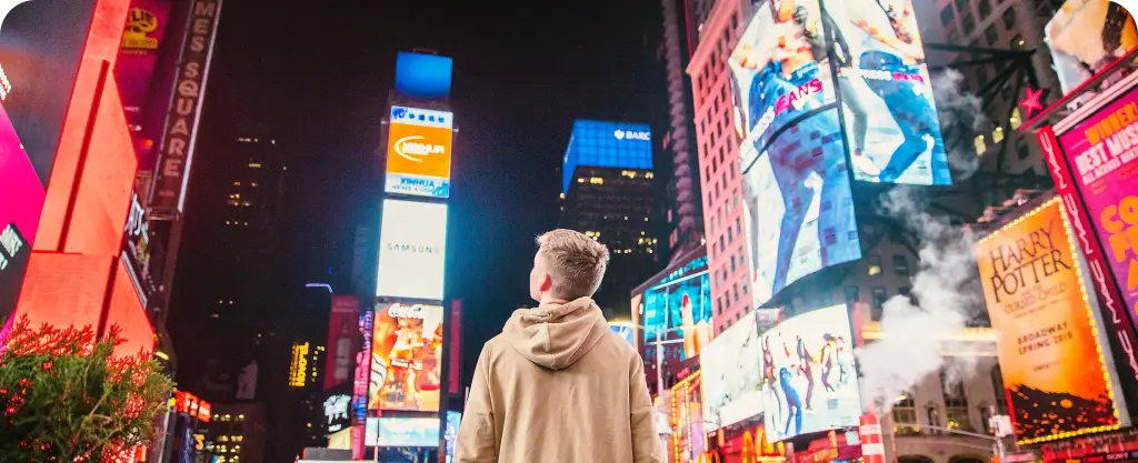 βœ… Times Square – Stand under the bright lights & visit the Red Stairs.